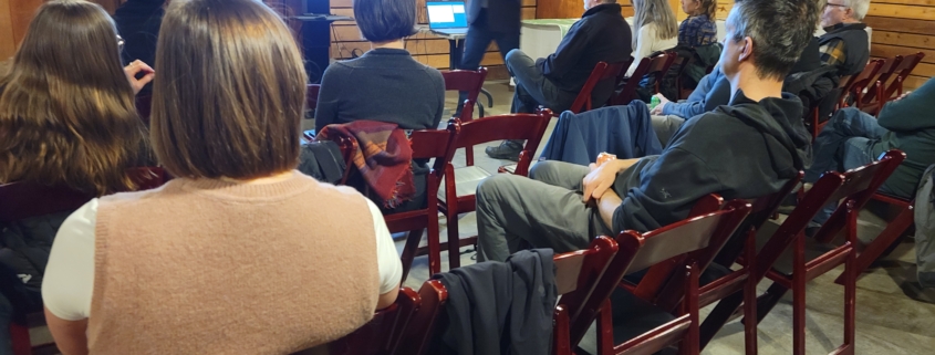 A keen crowd attended the November 19 Cheakamus Community Forest Information Session at the SLCC Long House. Nick Soverel, RPF with Frontera Forest Solutions and Abe Litz, RPF with Chartwell Resource Group gave presentations on the Climate Resiliency Plan and how it is being used to develop the CCF’s strategic operations plan.